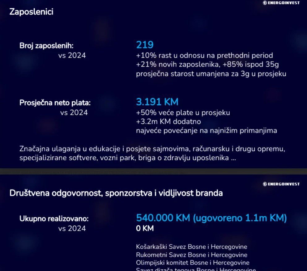 Energoinvest se vratio rezultatima, a ne riječima”, dodaje.