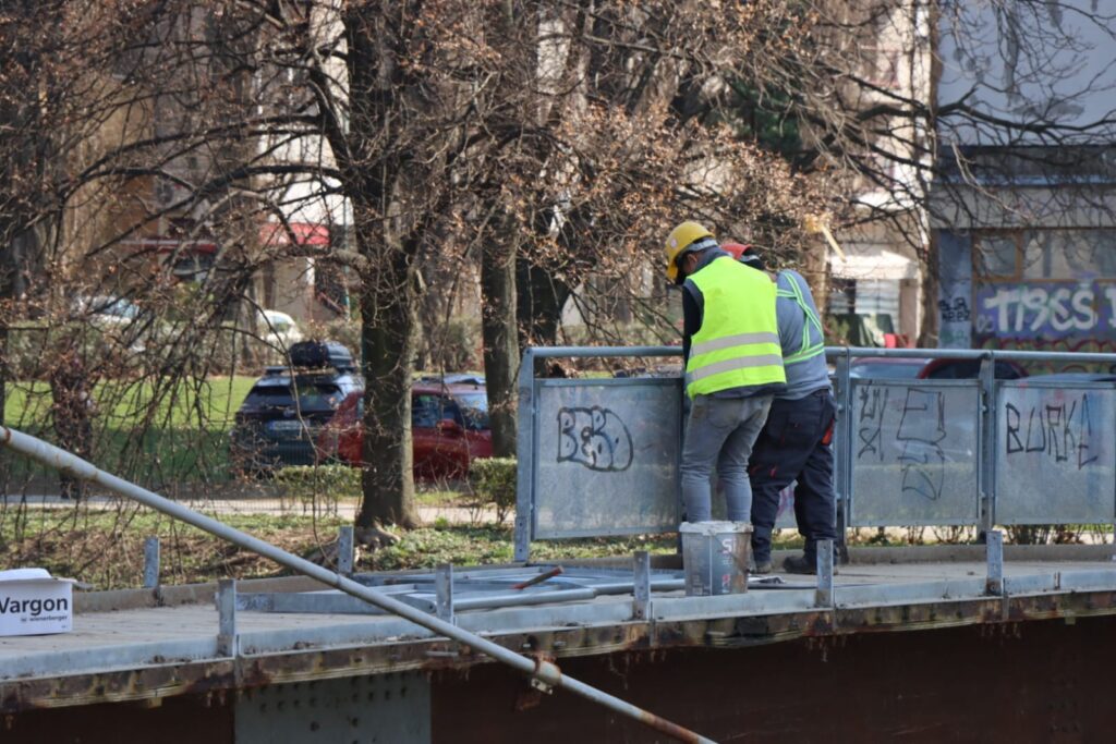 Most je jutros zatvoren za pješake, prilaz sa obje obale rijeke Miljacke je ograđen, a trenutno se izvode radovi na formiranju gradilišta i demontaži postojeće ograde.