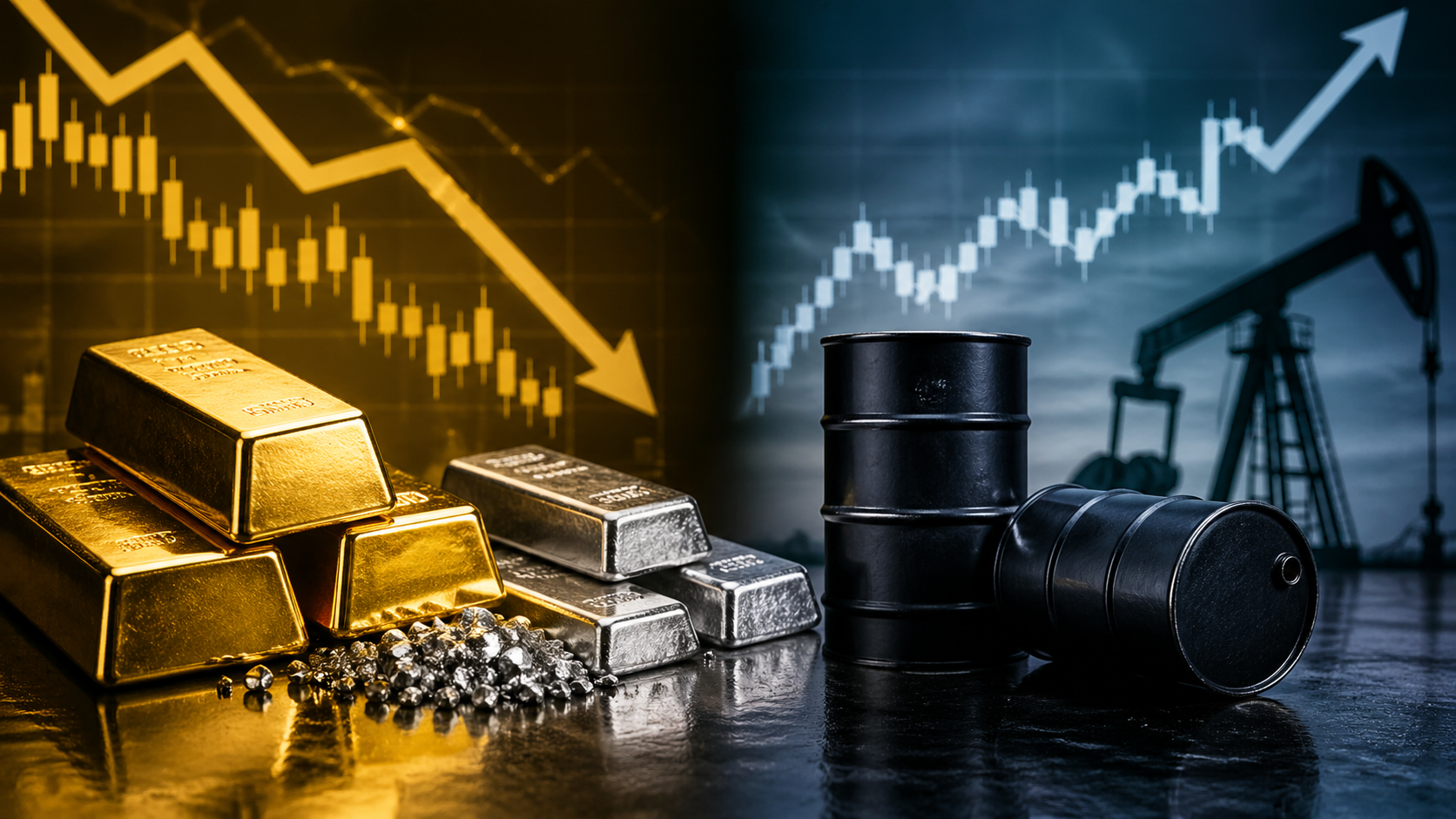 Pad cijena zlata i srebra u trenutku kada cijene sirove nafte rastu zbunjuje investitore, jer se plemeniti metali tradicionalno smatraju sigurnim utočištem u kriznim vremenima.