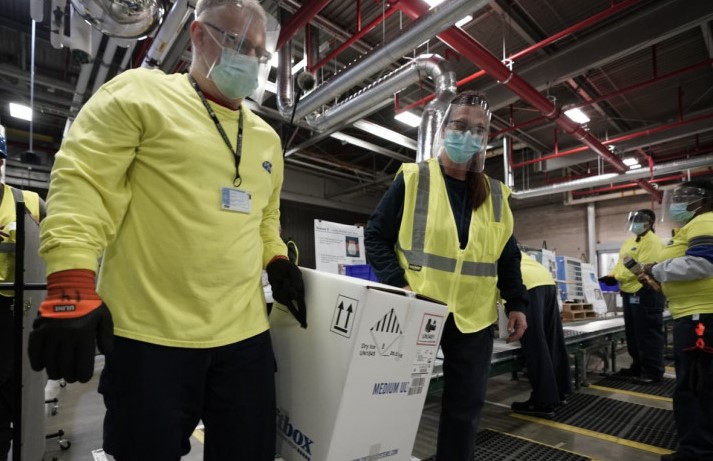 Radnici u „Pfizerovoj“ tvornici u Mičigenu otpremili su prve pošiljke svoje vakcine protiv COVIDA-19 čime je počela najveća i najsloženija distribucija  vakcina u historiji  Sjedinjenih Država.