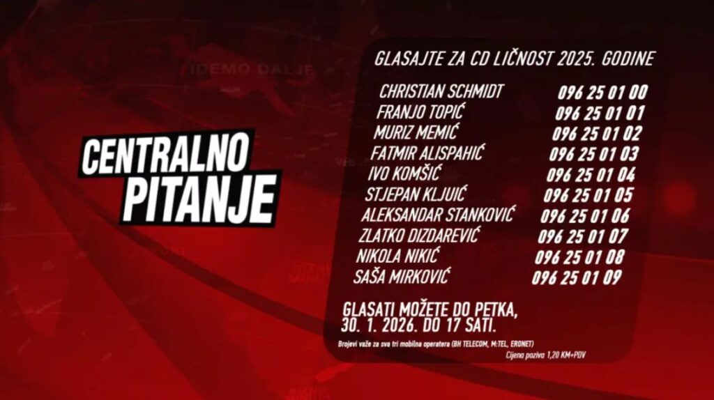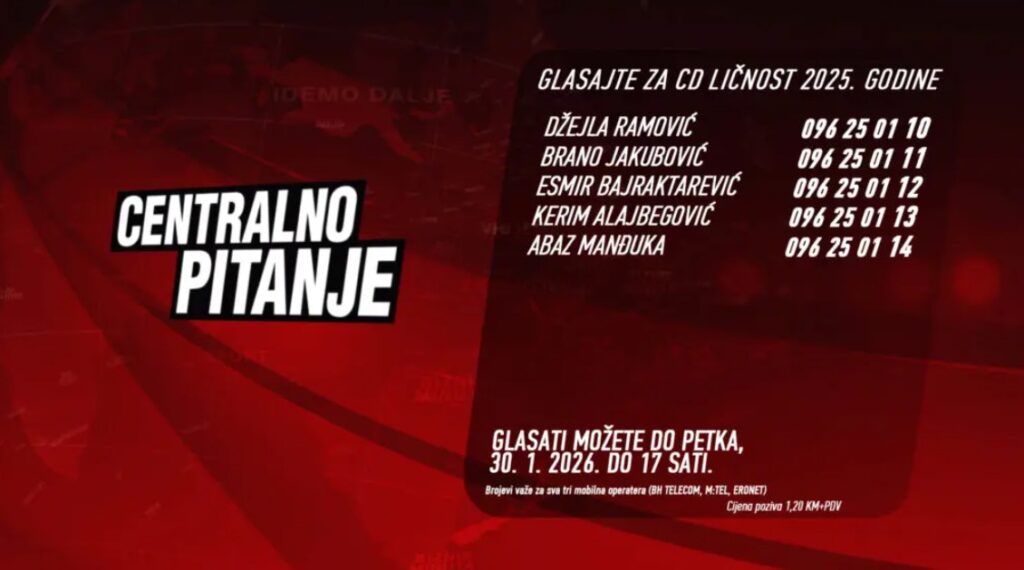 Ovo je 22. tradicionalni izbor CD ličnosti za 2025. godinu. Glasati možete do petka, 30. januara 2026. godine, do 17:00 sati.