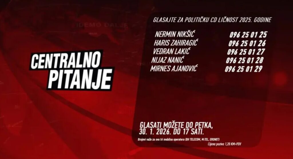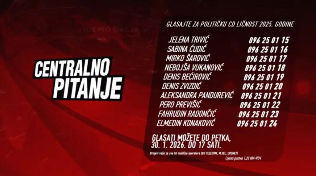 Linije za glasanje su otvorene do petka, 30. januara 2026. godine, do 17:00 sati. Tačnost rezultata garantuje „BH Telecom“. Brojevi važe za sva tri mobilna operatera (BH TELECOM, M:TEL, ERONET).