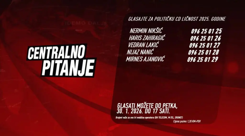 Podsjećamo vas da možete glasati do petka, 30. januara 2026. godine, do 17:00 sati.