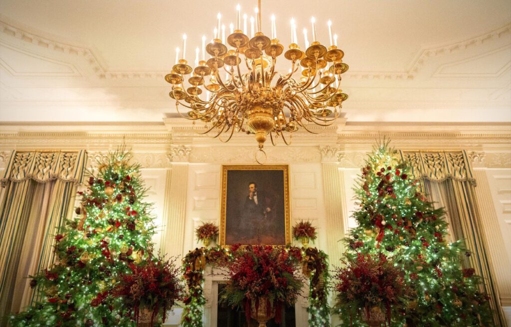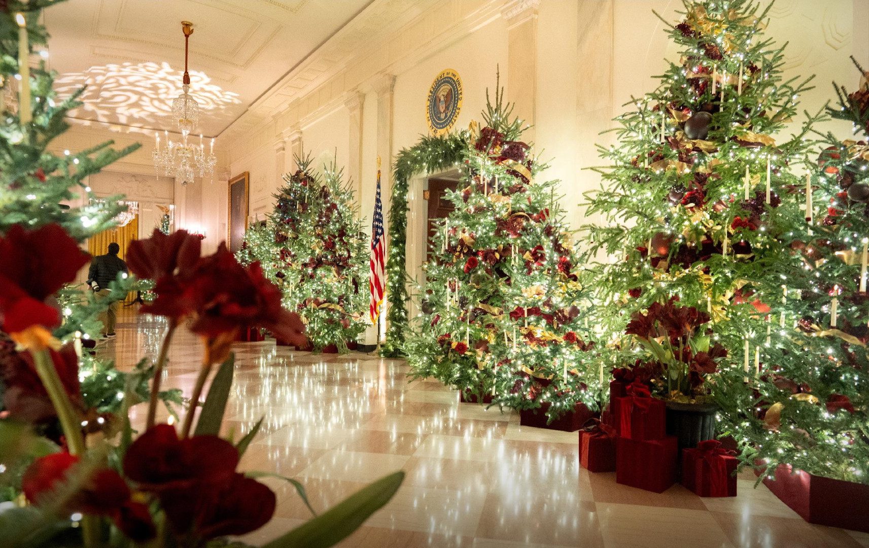 Bijela kuća sjaji uz pomoć više od 10.000 plavih leptira, 7.000 metara vrpce, 2.000 svjetlosnih niti, 2.800 zlatnih zvijezda, 200 metara vijenaca, 55 kila medenjaka, 51 božićnog drvca i 75 klasičnih vijenaca. Posjetioci će ove godine moći posjetiti Bijelu kuću uz izmijenjenu rutu.