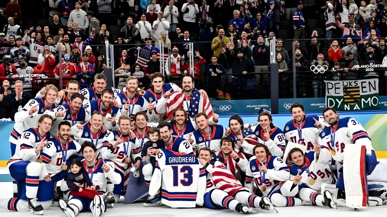 Nakon dodjele medalja, zlatni hokejaši na led su ponijeli zastavu Sjedinjenih Američkih Država, ali i dres s brojem 13 i imenom Johnny Gaudreaua, koji je tragično izgubio život u prometnoj nesreći u augustu 2024. godine. I to nije bilo sve – ubrzo im se na ledu pridružilo dvoje od troje Gaudreauove djece, Noa i Johnny junior, što je izazvalo pomiješane osjećaje kod svih prisutnih, ali i onih koji su sve pratili putem malih ekrana.