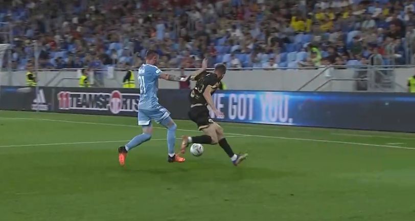 Šest minuta kasnije pravi rikošet pred golom Slovana. Prvo je Chovan odbranio udarce Savića i Ćužea, a zatim na pet metara pred golom Bilbiji s noge defanzivci domaćih skidaju loptu.