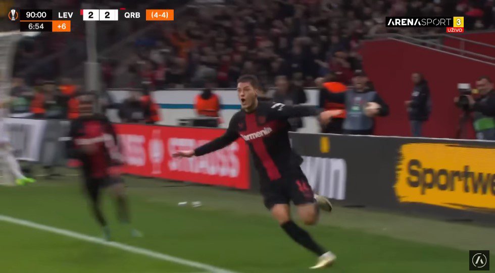 Iako je u samom startu Qarabag obećavao kada je u 57oj minuti Zoubir dao prvi gol, a zatim u 66oj minuti Juninho povećao na 2 gola razlike, Bayer je napravio veliki preokret sa prvim golom u 71oj minuti koji je osigurao Frimpong, a pobjednički niz nastavio je Schick u 90oj i potom u posljednjim sekundama 96te minute, koji je napravio nevjerovatan finiš i odveo Bayer Lever u četvrtfinale Europa lige.