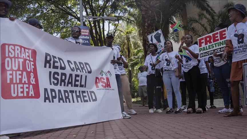 Demonstranti su se okupili ispred zgrade Fudbalskog saveza Južnoafričke Republike, tražeći da FIFA suspenduje članstvo Izraela u ovoj svjetskoj organizaciji, javlja Anadolu.