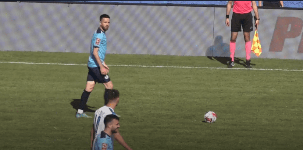 Pred samim krajem prvog poluvremena, domaći su ubacili loptu nakon slobodnog udarca, ali je siguran Abdulahović bio na pravom mjestu i bez većih problema uhvatio loptu.
