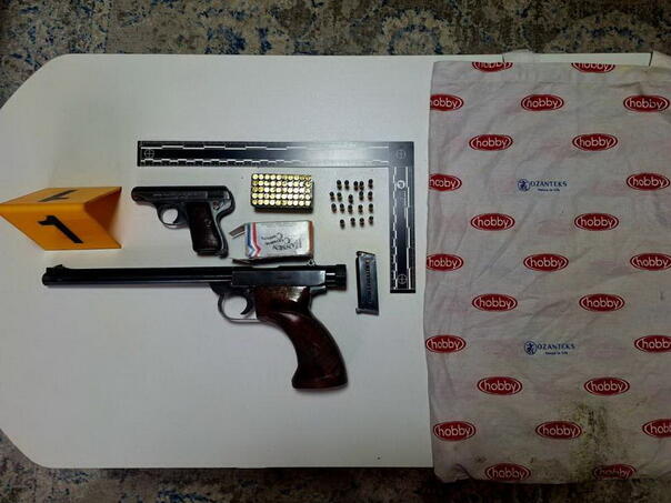 U pretresima na području Novog Sarajeva pronađena je određena količina materije koje asocira na opojnu drogu marihuanu, dva pištolja, spremnik za municiju, određena količina municije, te drugi predmeti od interesa za istragu.