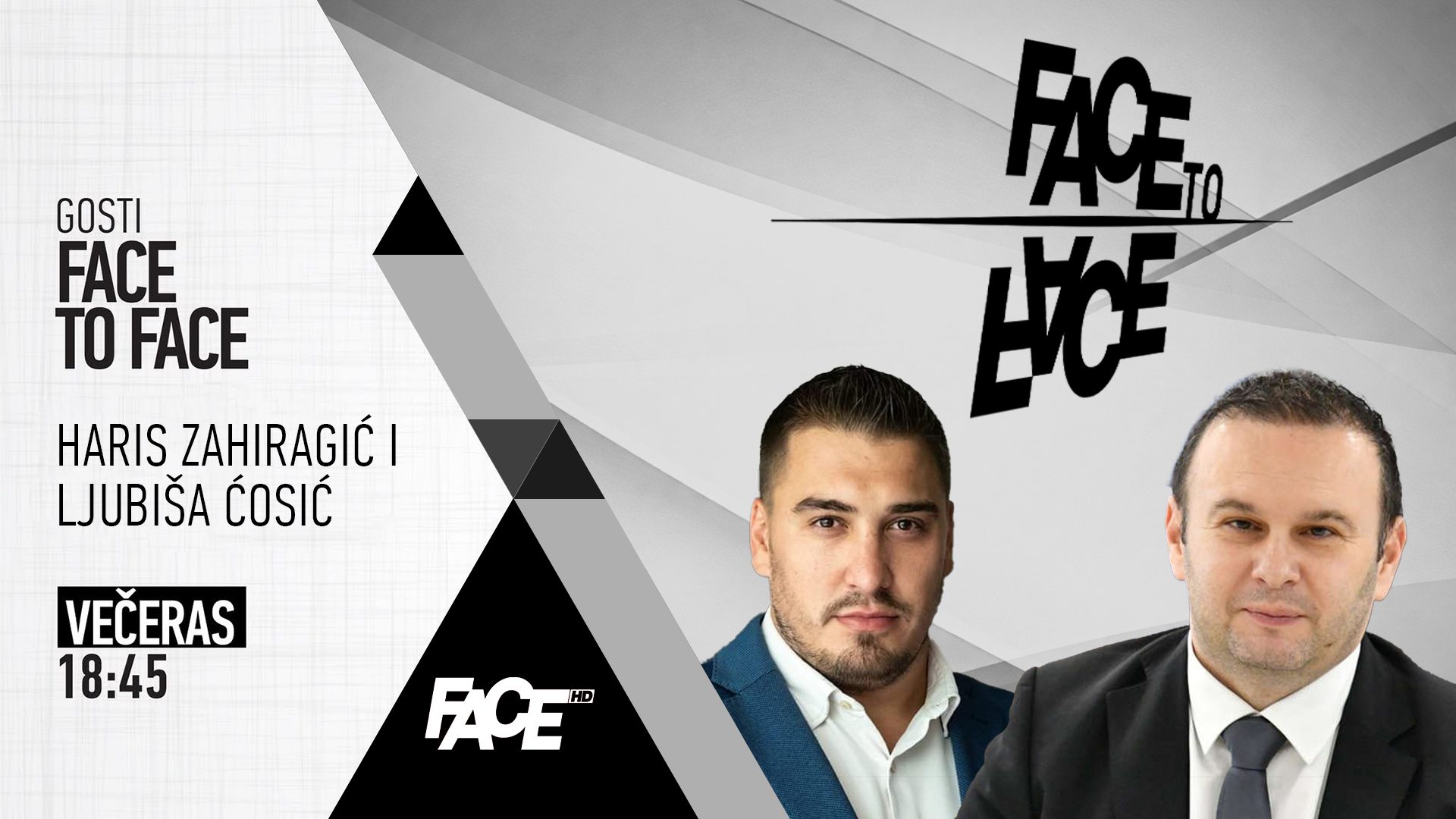 Večeras u studiju “Face to Facea” – sudar dvaju političkih svjetova! Jedan dolazi iz SDA, drugi iz SNSD-a. Haris Zahiragić i Ljubiša Ćosić su licem u lice VEČERAS u 18.45 sati.
