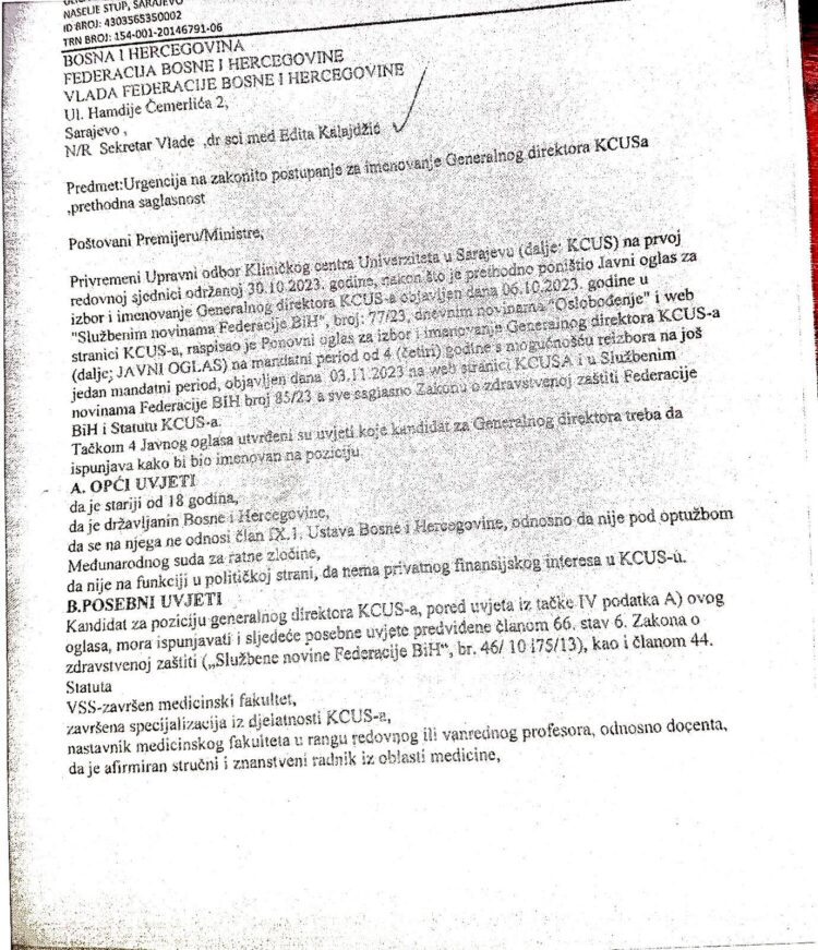 Podsjećamo da je drugorangirani kandidat na konkursu dr. Alen Pilav, aktuelni v. d. generalnog direktora KCUS-a.