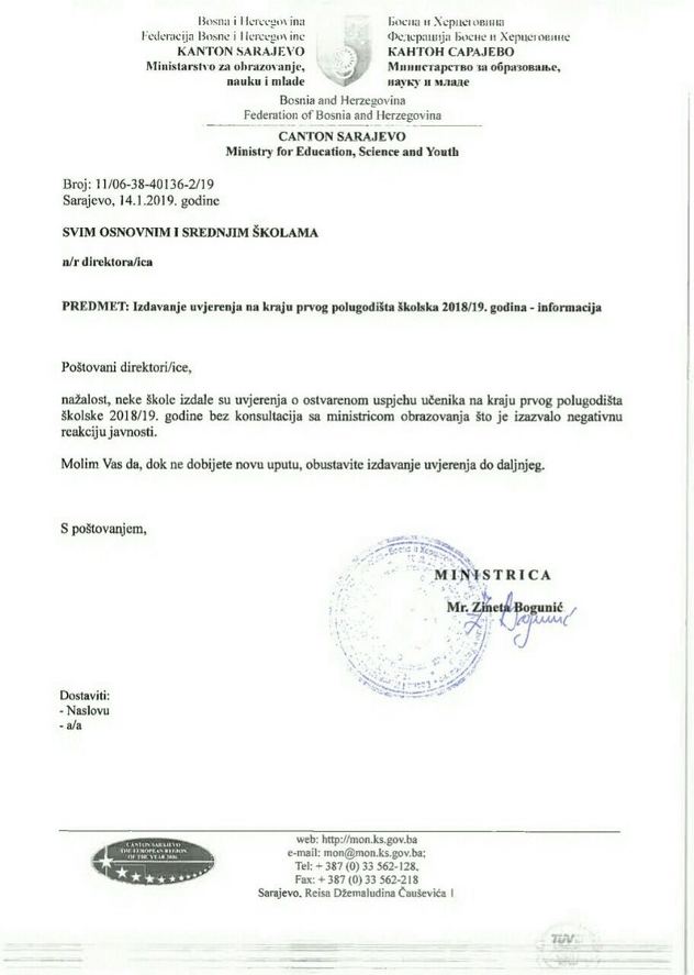 Jedan od čitatelja portala Klix.ba koji se javio našoj redakciji i kazao kako su roditelji ogorčeni na nadležne jer su 15 minuta prije izdavanja uvjerenja saznali da do toga neće doći.