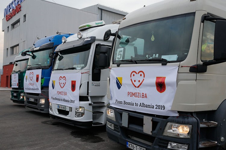 Pomoć Albaniji: Iz Sarajeva krenulo 14 šlepera sa 300 tona robe