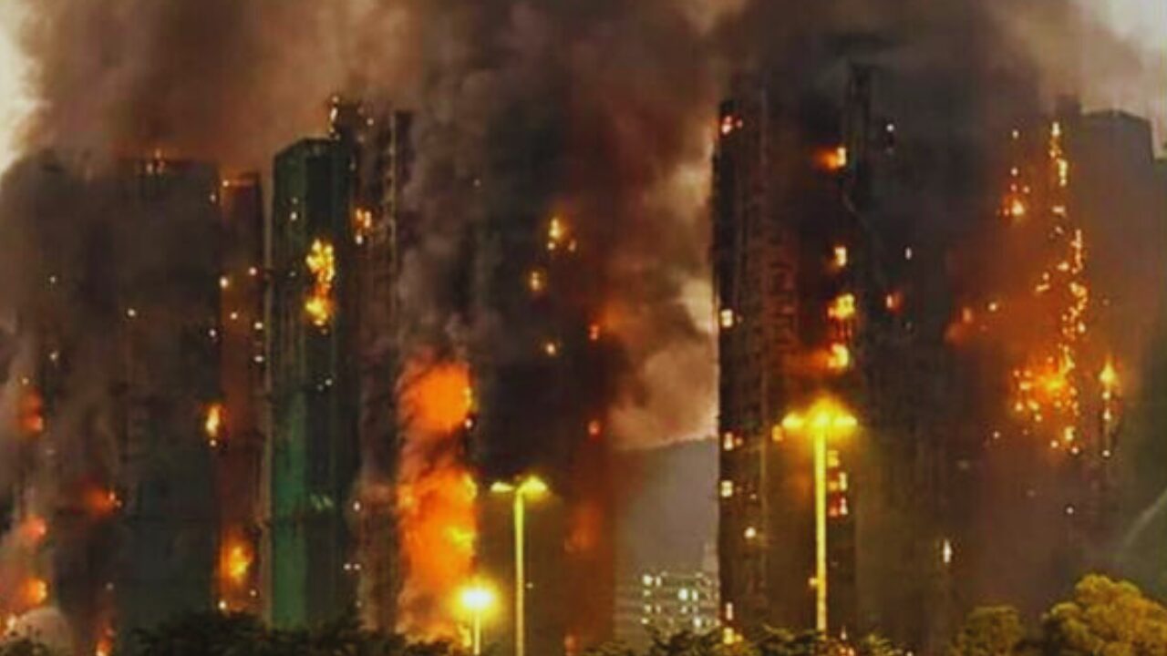 Uzrok požara nije odmah bio poznat, ali su ga rasplamsali zeleni građevinski materijali i bambusove skele koje je vlada počela postepeno ukidati u martu iz sigurnosnih razloga.