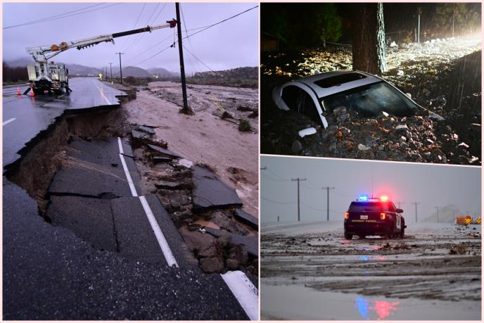 Oko 100.000 ljudi u državi bilo je bez struje od četvrtka navečer. U Altadeni, blizu Los Angelesa, stanovnici su doživjeli klizište zbog poplava u području ogoljenom vegetacijom koje je bilo manje sposobno apsorbirati vodu zbog požara koji su spalili naselje u januaru ove godine.