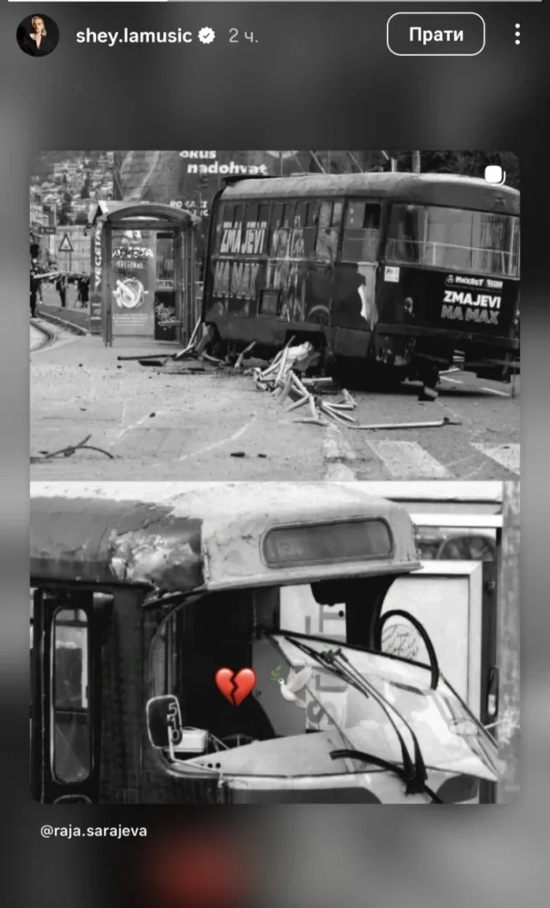 Naime, Šejla je podijelila fotografiju uz emotikon slomljenog srca, zatečena tragedijom koja je zadesila Sarajevo.