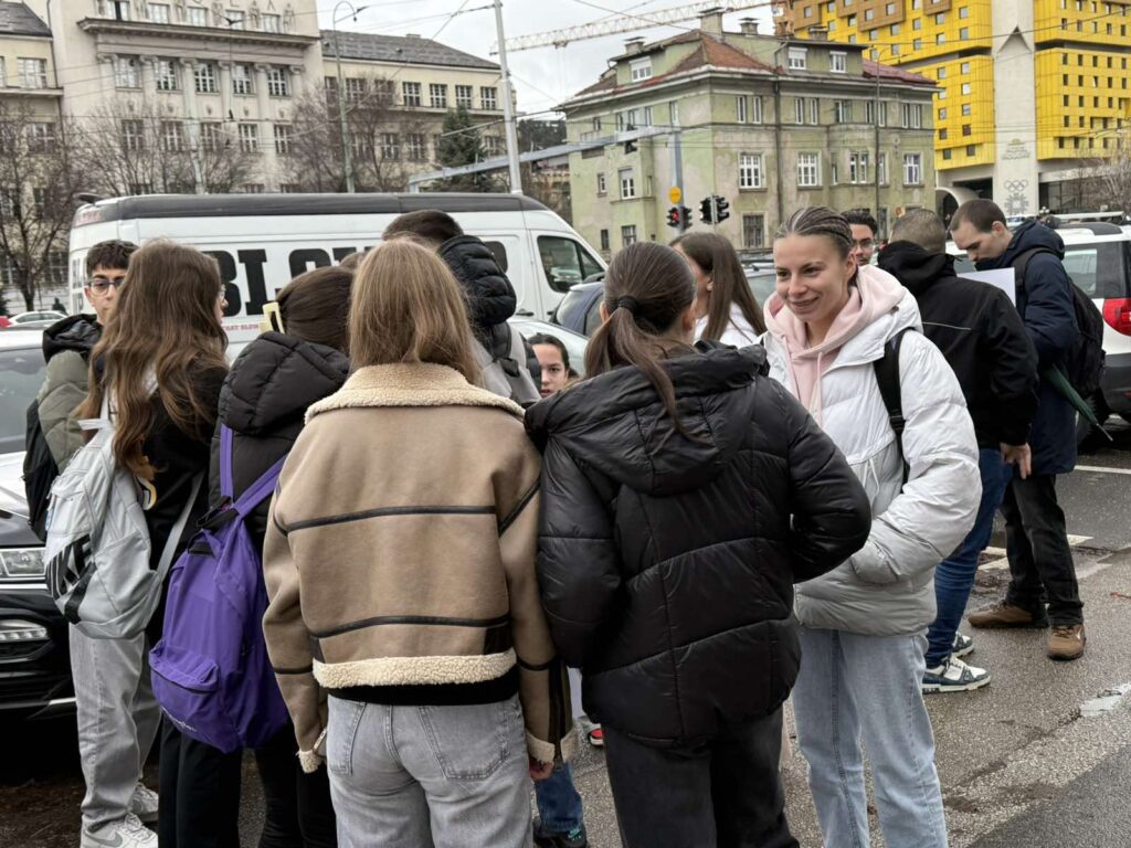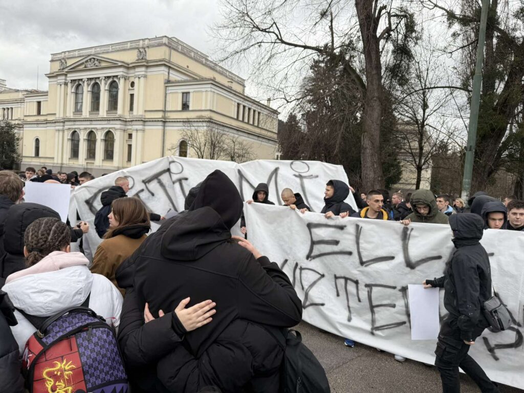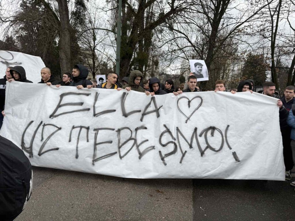 Studenti su razvili i veliki transparent sa porukom podrške učenici kojoj je amputirana noga, a on glasi “Ella, uz tebe smo”.