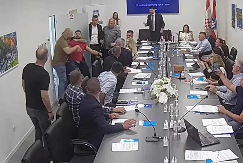 Tomislav Bandić, zastupnik u Skupštini Zapadnohercegovačkog kantona, pokušao je ući na sjednicu Općinskog vijeća Grude, gdje ga je u tome pokušao spriječiti zaštitar, nakon čega je došlo do situacije u kojoj je ostao bez majice.