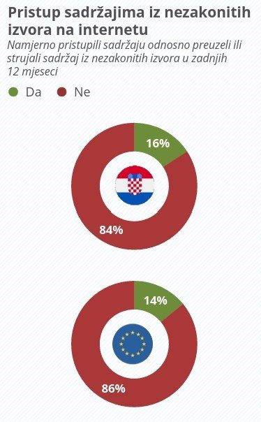 Prema podacima EUIPO-a iz 2023. godine, 16 posto hrvatskih građana svjesno je pristupilo ilegalnom streamingu u proteklih 12 mjeseci. Na nivou cijele Evropske unije taj postotak iznosi 14 posto.
