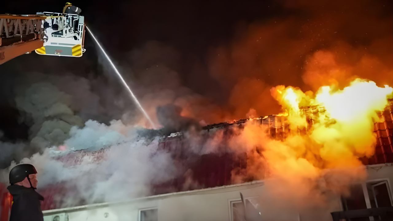 Lysak je objavio fotografije zgrade u požaru i druge sa zjapećom rupom na boku, te ekipa hitnih službi koje rade unutra.