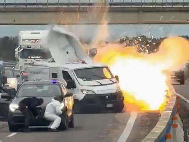 Teško naoružani pljačkaši koji su se lažno predstavljali kao policija blokirali su italijansku saobraćajnicu i digli u zrak oklopno vozilo tokom pljačke na jugu Italije, nakon čega je uslijedila razmjena vatre s policijom.