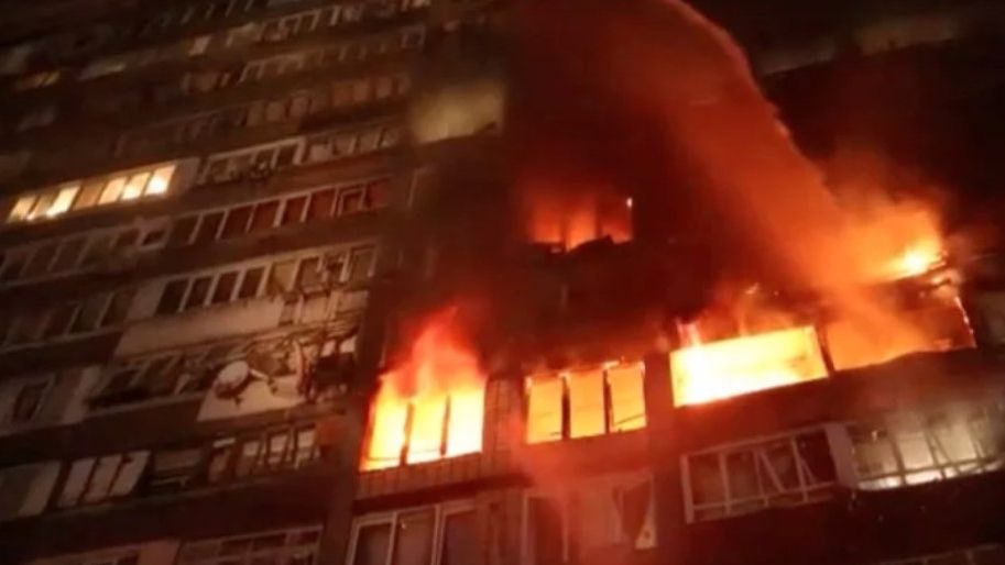Na društvenim mrežama pojavile su se dramatične fotografije stanova u plamenu, dok su vatrogasci pokušavali lokalizirati požar. U više dijelova grada pali su ostaci oborenih dronova.