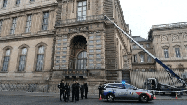 Dok su dvojica počinitelja čekala na ulici na skuterima, druga dvojica su koristila platformu za podizanje kako bi došli do balkona na prvom spratu i odatle ušli u muzej kroz prozor.