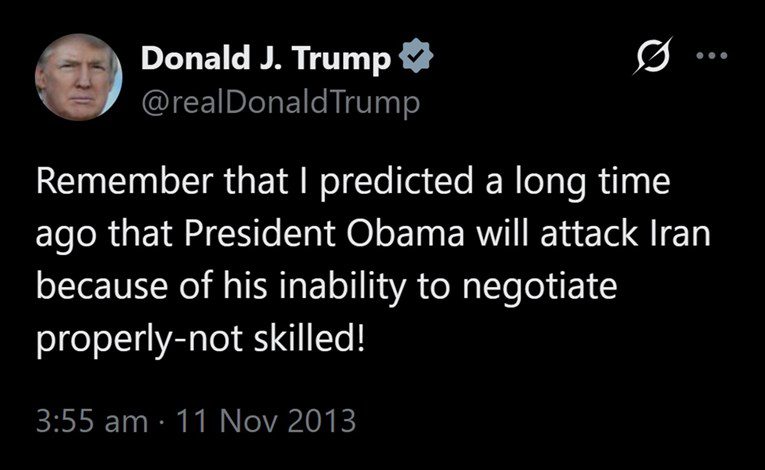 10:22 Trump 2013.: “Zapamtite moje predviđanje – Obama će napasti Iran jer je nesposoban”
