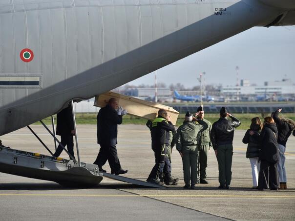 Prema italijanskoj novinskoj agenciji Ansa, avion je već sletio na milanski aerodrom Linate, odakle će četiri kovčega biti prevezena u Milano, Bolonju i Đenovu. Peti kovčeg biće prevezen u glavni grad Rim.