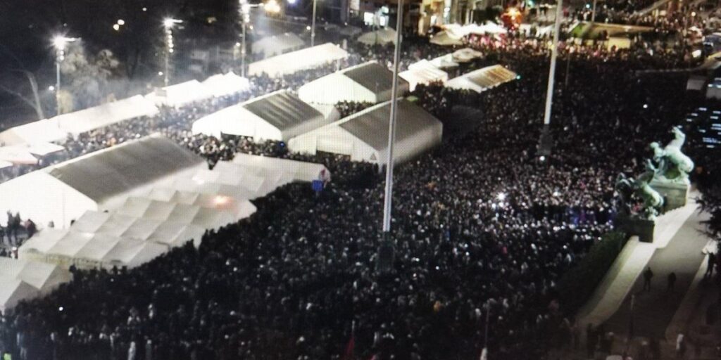 “Sve je postalo inverzno perverzno u našoj zemlji. A grupa mladih ljudi okupljala se da čuva svoju državu. Naslušao sam se, kao i vi, licemera, tobož prijatelja i saveznika “a što to Aleksandre ne sklonite Ćacilend”, mi se tim imenom ponosimo iako on ima drugo ime, kada postavite pitanje “što da sklonimo” videćete bezbroj besmislenih komentara “smeta nam u saobraćaju”, a nije vam smetalo kad ste 25 dana držali zatvorene dve žile kucavice, najprometnije ulice u Beogradu. To vam nije smetalo. Smetala vam je skupina ljudi. Iskra je prerasla u plamen i živu vatru koju više niko nije mogao da skloni. Zajednički moramo da sačuvamo zemlju, ta borba mora da bude politička, a ne vojnička. Srbija mora da ide ubrzano napred i zato verujem da će naredna godina biti možda najbolja u istoriji Srbije, kad ćemo da imamo najveće penzije, obezbedimo najveći rast Srbije. Nastavićemo da radimo i da gradimo”, kazao je Vučić i dodao: